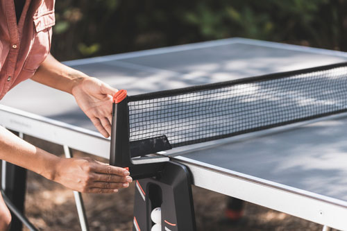mm debelo igralno površino iz smolnatega laminata, miza za namizni tenis 500X omogoča igranje tudi najbolj zahtevnim igralcem, ki tako končno ne bodo več zapuščali igranja na zunanjih mizah.